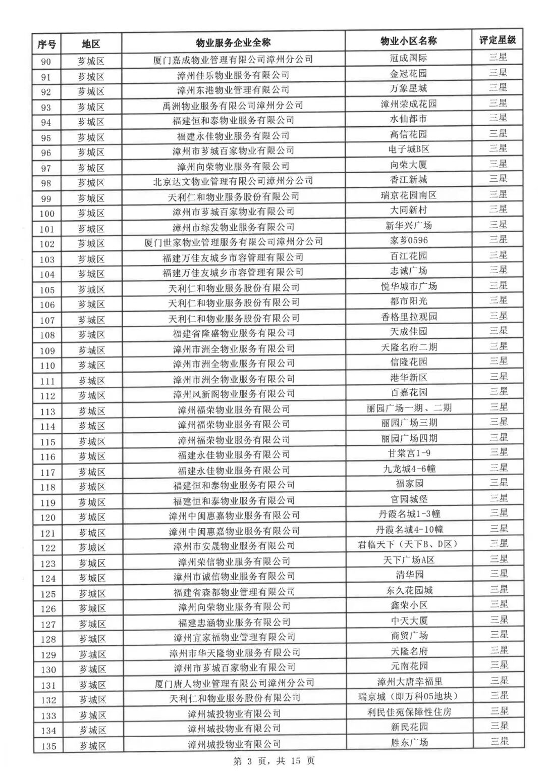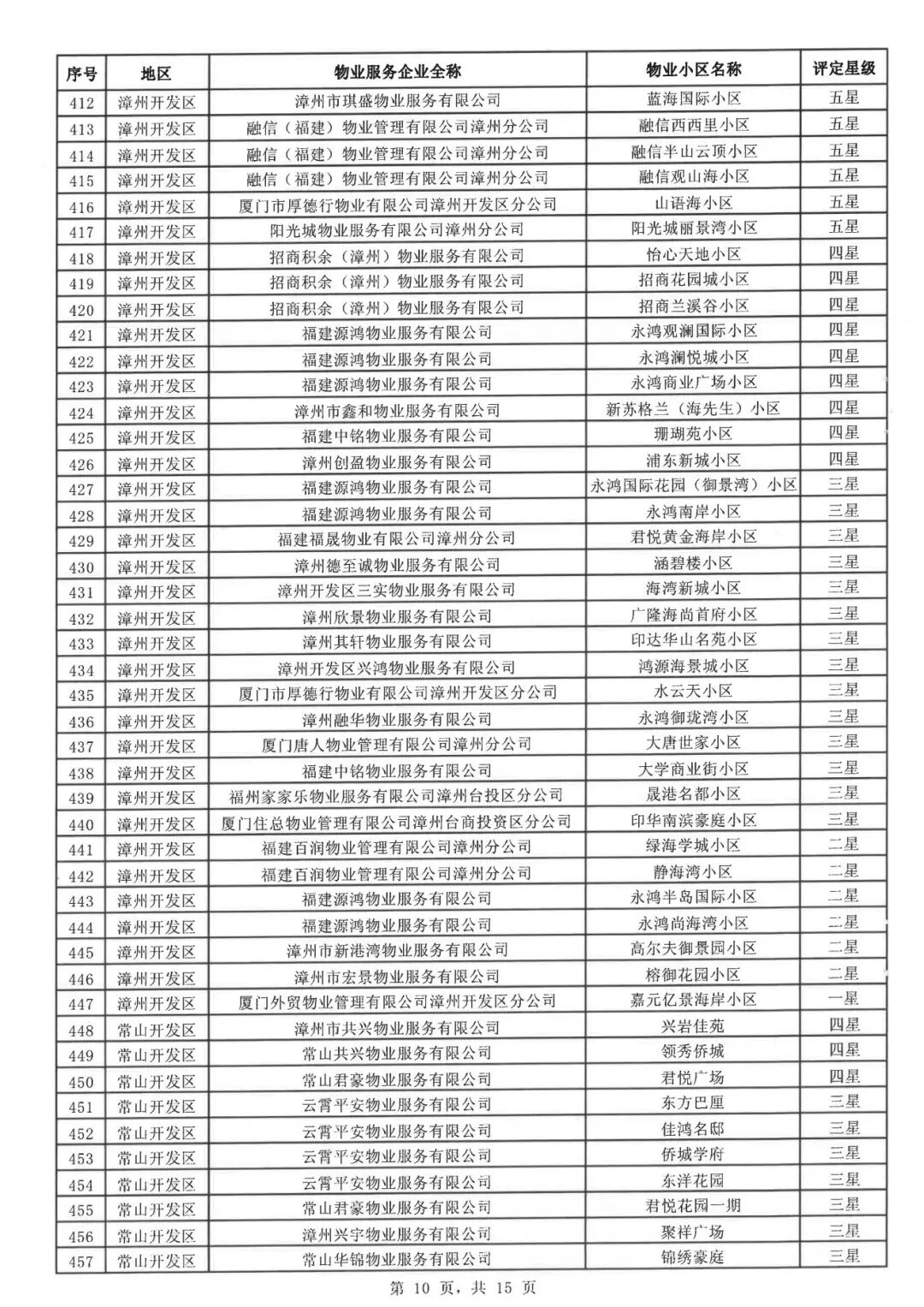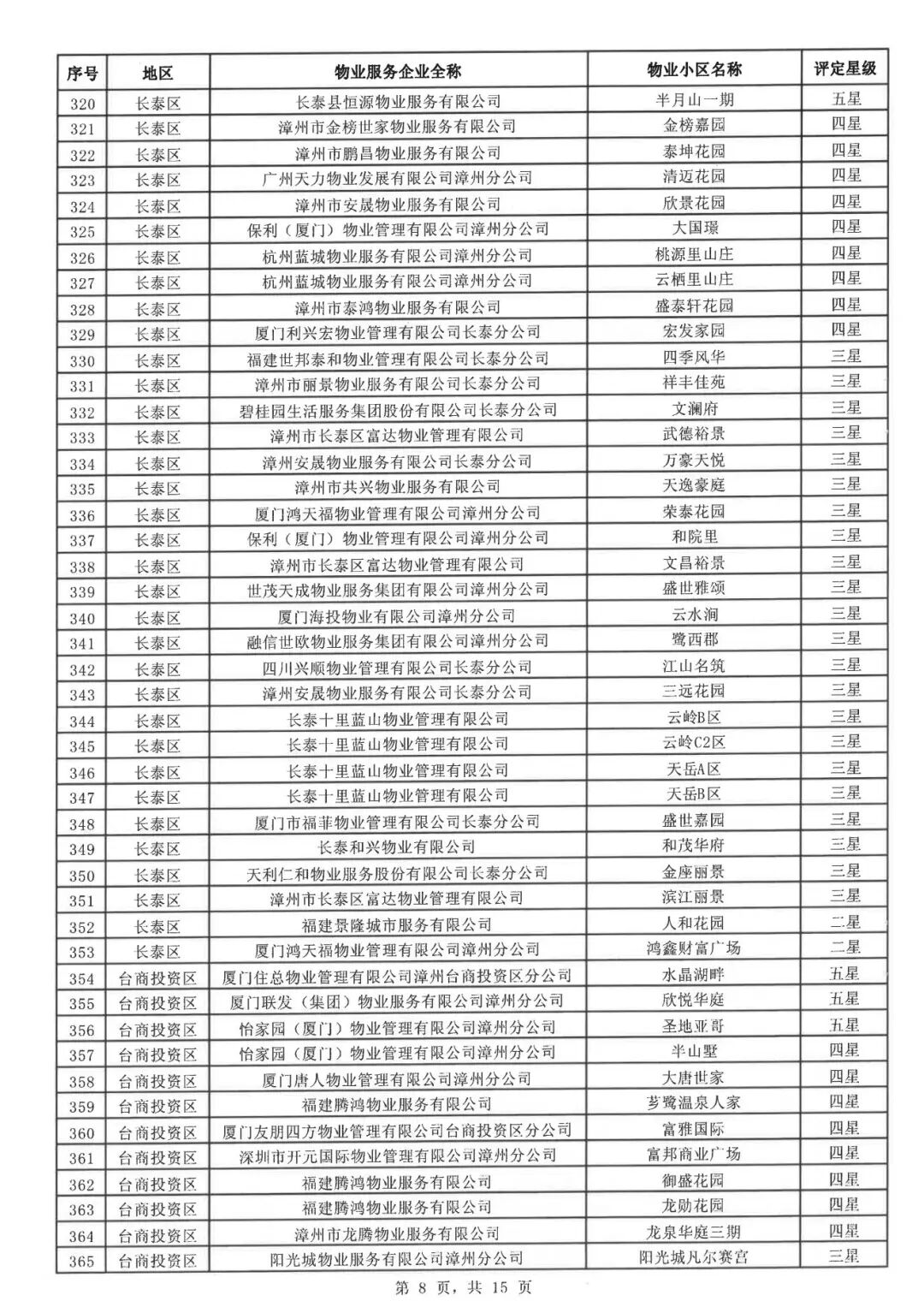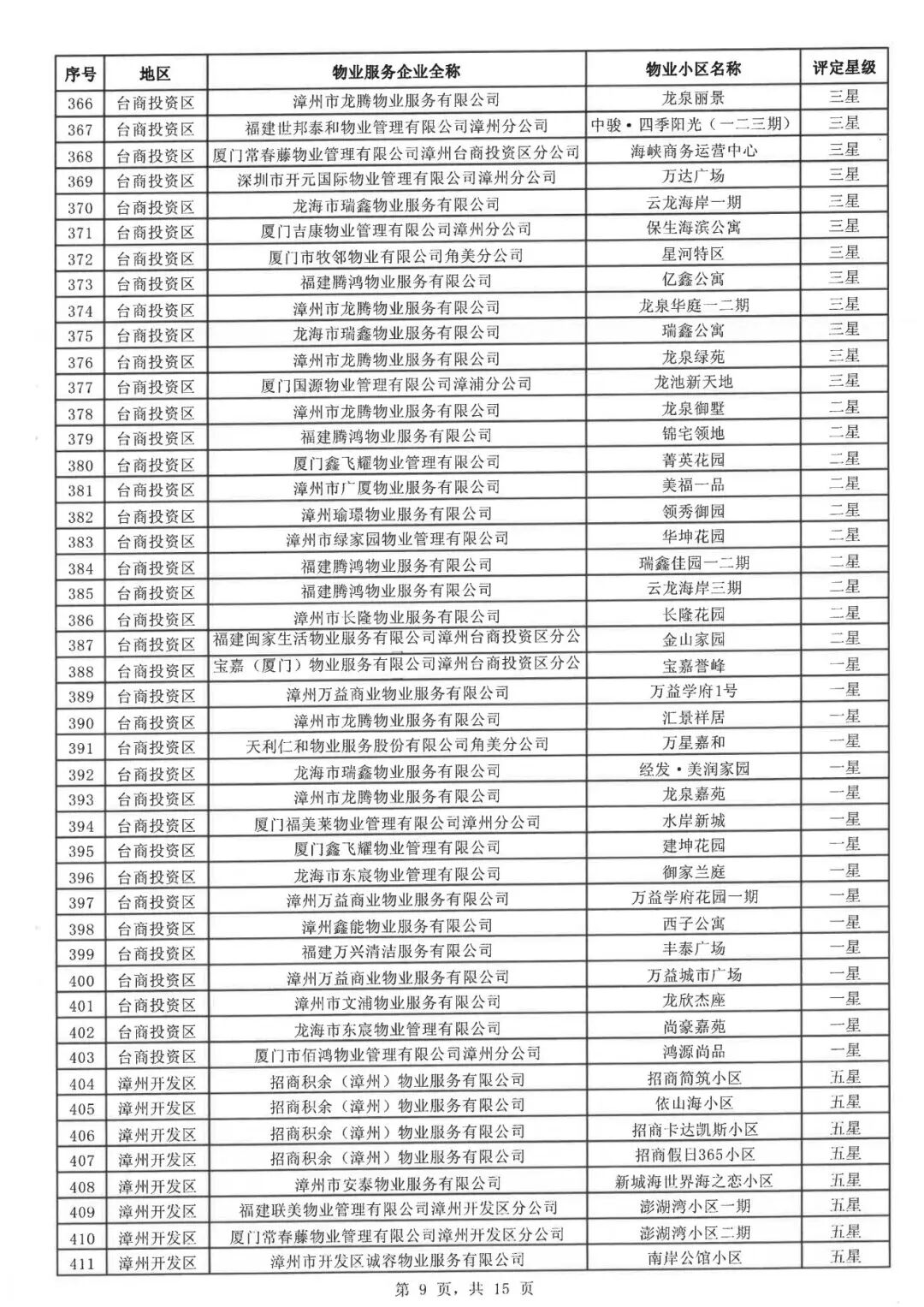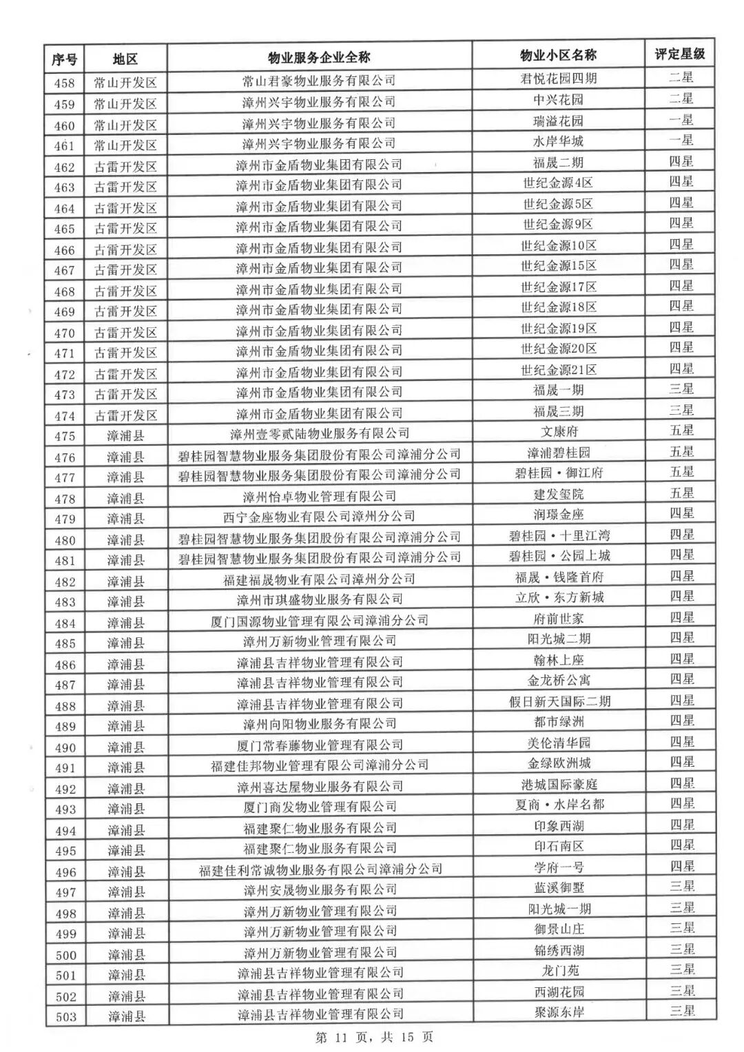 (个别小区属于社区居委会引进代管,尚未到属地城管部门备案,没有参与此次评定。) 来源:漳州城市管理 推荐阅读 ![]() 责编:漳州楼市情报/漳州楼市网www.0596loushi.com整合编辑 免责声明:图文版权归属原作者,文章内容及图片如涉及作品内容、版权和其它问题,请在30日内与本公众号联系,我们将在第一时间删除内容。文章只提供参考并不构成任何投资及应用建议。 ![]() 猛戳,提醒更多人“在看” 免责声明:凡注明“来源:漳州楼市网”或“漳州楼市情报”的所有文字图片视频等资料,版权均归漳州楼市网/漳州楼市情报所有,转载请注明出处;文章内容仅供参考,不构成投资建议,也不代表漳州楼市网/漳州楼市情报赞同其观点。文中所涉面积如无特别说明,均为建筑面积。文章如有涉及侵权的内容、图片以及其它问题的,请联系本站删除,联系电话:0596-2182801。 |