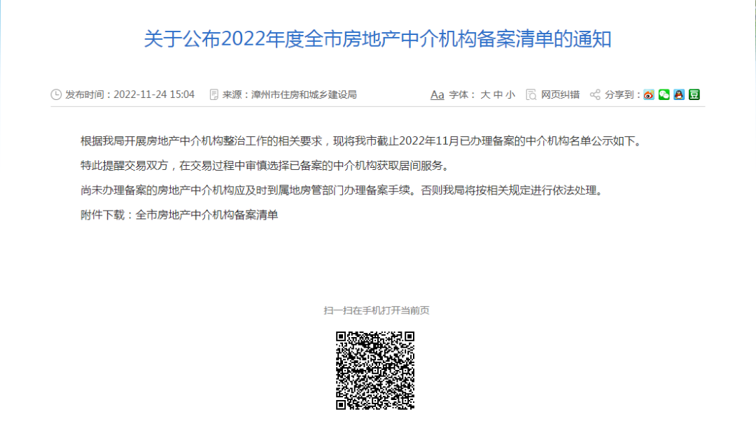 买房注意!官方公布!漳州房地产中介机构已备案多达1864家!市区共有1335家! 二维码