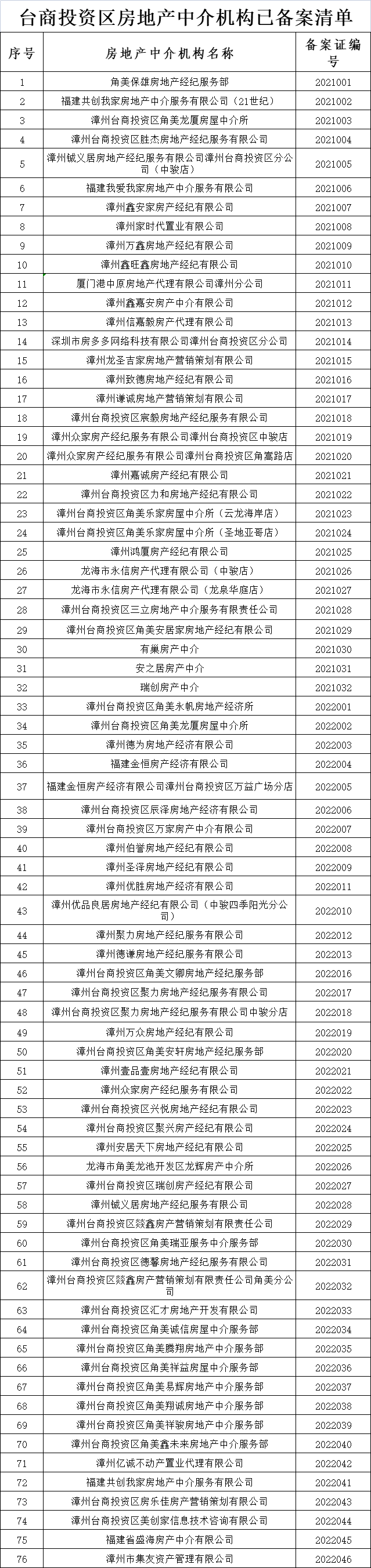 发表时间:2023-03-22 10:44网址:https://www.0596loushi.com/ ![]() 备案清单 ![]() ![]() ![]() ![]() ![]() 台商投资区(角美)76家