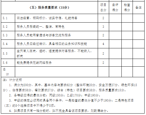 5.漳州市芗城区旅游民宿等级划分评定细则表