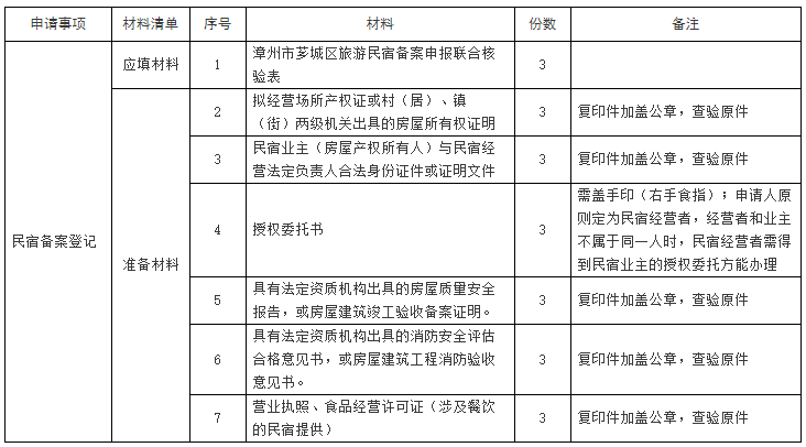 3.漳州市芗城区旅游民宿备案一次性告知材料清单