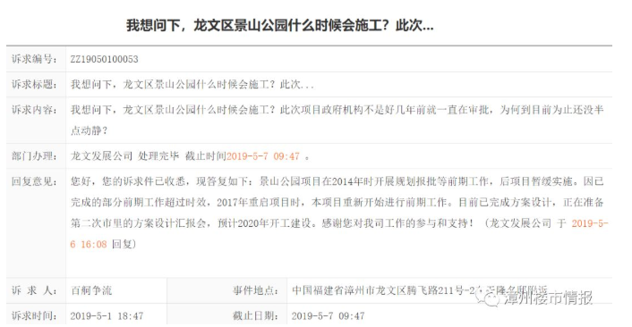 龙文区景山公园何时施工?龙文发展回复:开工建设时间初步定了 二维码