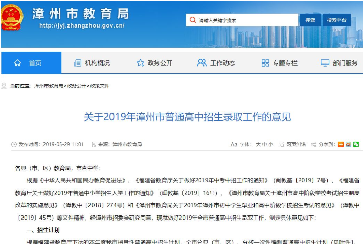 发表时间:2020-11-11 17:15来源:漳州市教育局 【编者注:为了向网友提供更多更丰富的资讯,本网将转载、转发部分回顾性资讯,相关资讯的发布时间、所述事件时间,请网友留意。注:本文发布于2019年5月。】 今日, 2019年漳州市普通高中招生录取工作意见 新鲜出炉!