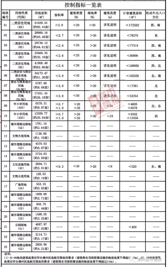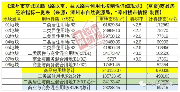 (《漳州市芗城区腾飞路以南、益民路两侧用地控制性详细规划》 (草案) -控制指标一览表,点击图片看大图) 相关资讯: