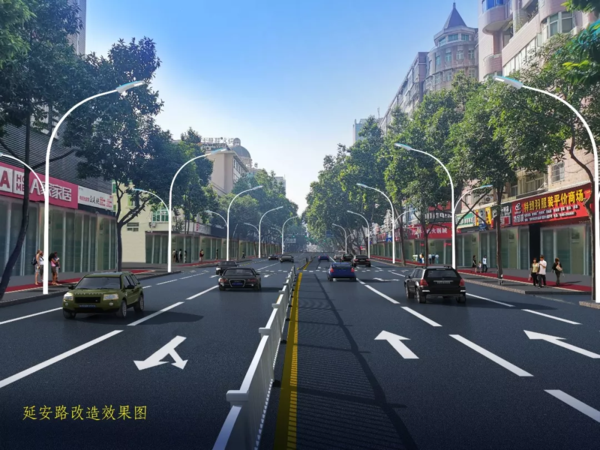 ■延安路改造项目南起新华西路,向北经瑞京路、南昌路、民主路等,北至胜利路,全长约550米,红线宽度32米。 ■民主路改造项目东起延安路,向西至区委宿舍门口,路线全长约220米。 ■按照污染源攻坚整治要求,针对该路段沿线存在的雨污混错接、雨污管网淤积和破损、店面污水直排等问题,进一步提高雨水排水标准、加密雨水篦子,完善雨污分流。 ■按照节能改造理念,将道路两边路灯照明更换和提升,路灯釆用节能的LED路灯。 ■按照海绵城市建设理念,人行道铺设透水材料,提高雨水渗透能力。 ■按照共杆共箱理念,整合道路杆件、箱体,优化城市街景、立面,并增设街景小品、古城元素符号等内容。对道路两侧原有树木将予以适当修剪整理。 ■按照交通畅行的要求,将原混凝土路面改为沥青路面,提升道路行驶舒适性,并达到降尘降噪的效果,同时开展新华西路口堵点改造,缓解交通拥堵问题。 ■按照背街小巷整治要求,对民主路西段同步整治,完善路面、管网、排水、路灯、街景等。 改造后的延安路,将有效改善周边学校、社区、商场出行条件,缓解交通拥堵问题,提升和完善城市形象,打造良好的宜居环境。