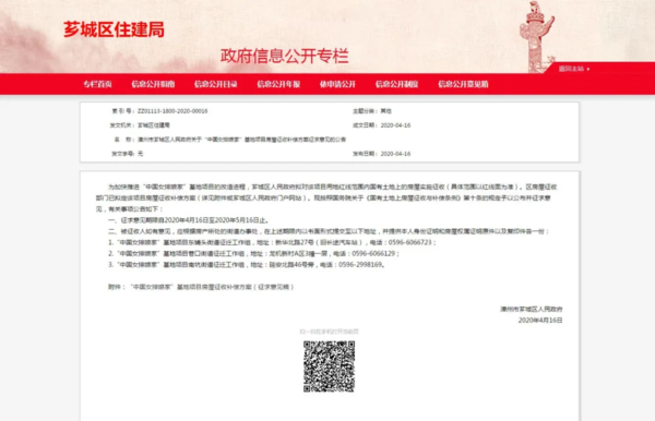 漳州“中国女排娘家”基地项目房屋征收补偿方案征求意见 二维码