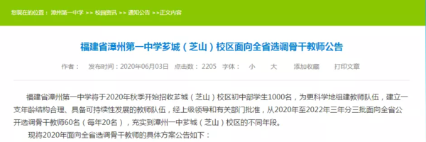 2020年漳州一中龙文校区初中招生方案调整!漳州一中芝山校区选调骨干 二维码