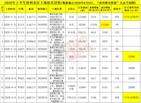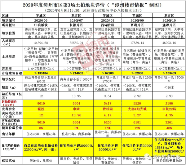 (“漳州楼市情报”制图,点击图片可看大图) 附:漳州市区2020年度第3场土地拍卖各地块详情及利好分析 (来源:闽南日报) 2020P06地块(丹霞地块)“城投”竞得