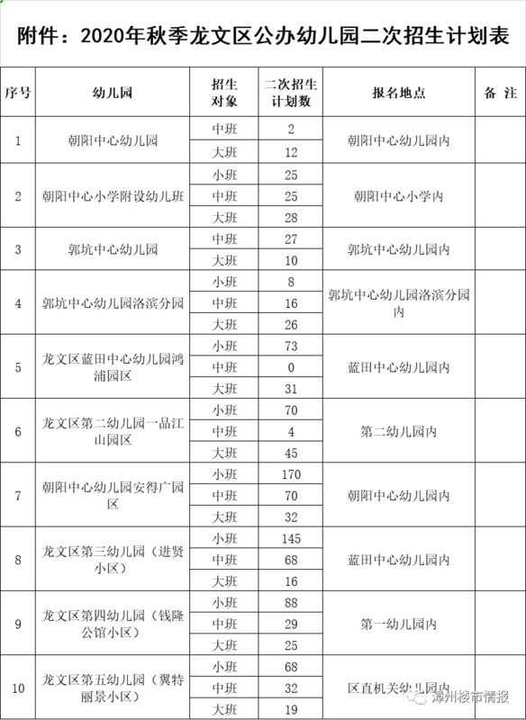 发表时间:2020-12-28 22:43来源:漳州市龙文区教育局 【编者注:为了向网友提供更多更丰富的资讯,本网将转载、转发部分回顾性资讯,相关资讯的发布时间、所述事件时间,请网友留意。注:本文发布于2020年8月。】 独家:2020年秋季龙文区公办幼儿园报名冷热不均!还有1206个名额!详情看这!