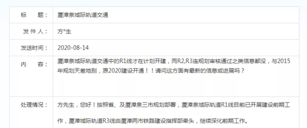 发表时间:2020-12-29 09:04来源:小鱼购房帮 【编者注:为了向网友提供更多更丰富的资讯,本网将转载、转发部分回顾性资讯,相关资讯的发布时间、所述事件时间,请网友留意。注:本文发布于2020年8月。】 官宣! R1已开展建设前期工作 R3将继续深化前期工作 近日,有网友询问厦漳泉城际轨道交通有最新的信息或进展吗?表示R1线才计划开建,而R2、R3连规划审核通过之类信息都没有,与2015年规划天差地别,原2020年建设开通!