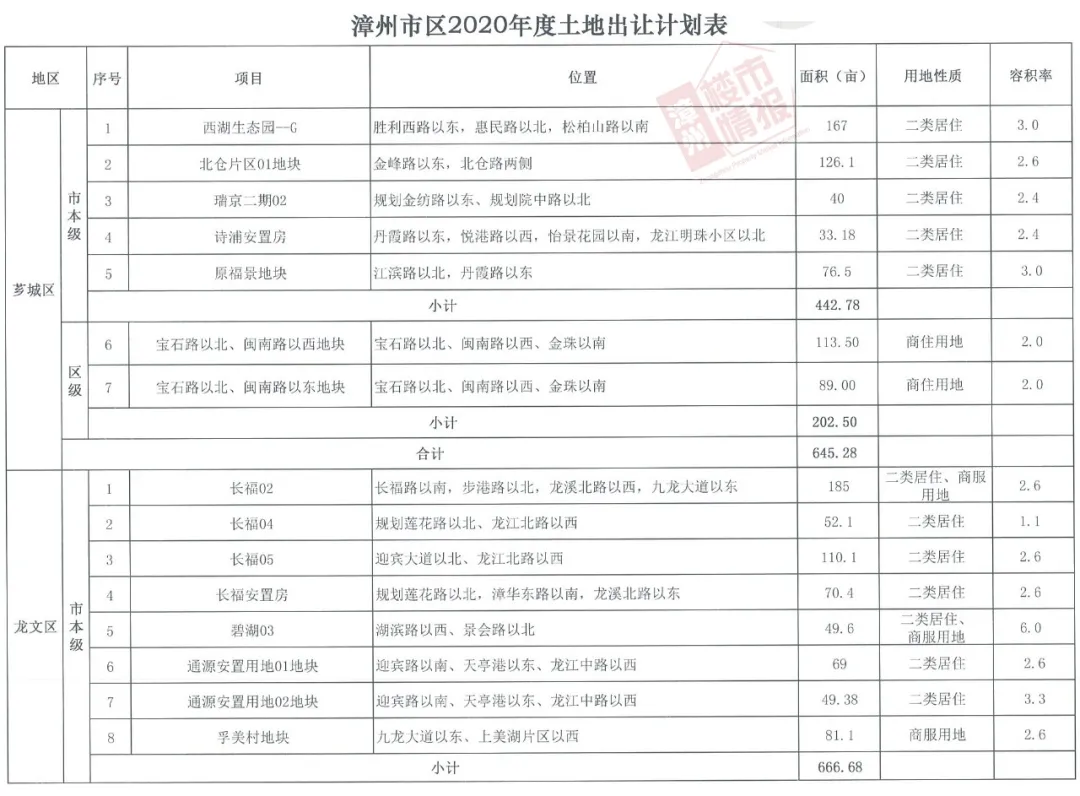 漳州市区2020年度中期调整后计划出让44宗地块!附地图 二维码
