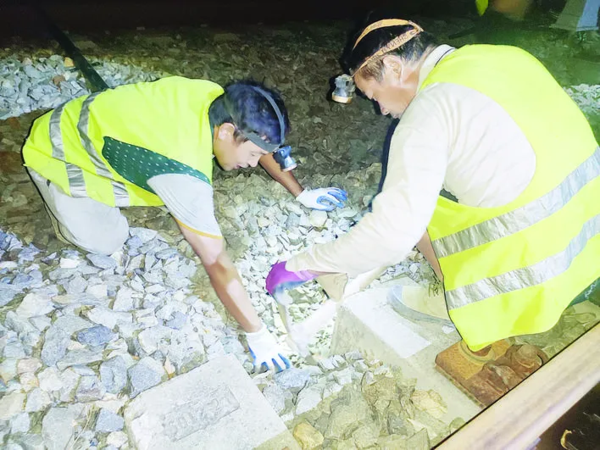吴云是8月22日晚离开动车站的最后一批旅客,在他离开后不到1个小时,一束束手电筒的光柱照射到漳州动车站的轨道上,刘海涛和二十几名工友进入已经封闭的轨道上,开始了一天的工作。 刘海涛是河南人,同时也是中铁六局的一名施工人员。他们今晚的任务,便是在需要拆除的铁轨边上安装防护栅栏,为后续施工提供条件。 此时已是子夜时分,朦胧月色下的铁轨一直延伸到远处的黑夜之中。工人们穿着反光背心,头戴着装有手电筒的安全帽,提着“哐当”作响的工具袋,鞋子与铁轨边上的石头摩擦出“沙沙”的响声。一切准备就绪后,开始从出料口将防护栅栏一片一片背运出来。 防护栅栏约30斤。虽然对于一个成年男性来说,并不算很重。但是栅栏3米宽、1.8米高的规格,让刘海涛只能将栅栏背在弓成30度角的背上,依靠手电筒的灯光,小心翼翼踏着石头,一步深一步浅地背到各个施工点位。 “不敢晃不敢晃,抓牢哩!”“中不中?中不中?”“中!下一个!” 和刘海涛同一小组的工人,大部分来自河南。工人们用着地道的家乡话,在夜色中相互沟通配合,每次3米向前推进。 而在轨道的另一头,另一组工人则在做着安装立杆的工作。 中铁六局福厦项目部四分部党支部书记陈玉涛用手电筒照着道床上的刚刚被挖出来的洞,说道:“立杆工作不比装网简单,尤其是在第一步,要在道床上的石渣中挖出一个50厘米深的洞,再将立杆插进去。因为石子很滑,铁锹等工具往往不好操作,就需要人工徒手操作。” 借着手电筒的灯光,五六个工人戴着手套,有的双膝跪地,有的甚至趴在凹凸不平的石渣上,将石子一颗一颗往外刨。挖至半米深后,将立杆插入,并倒入混凝土进行固定。 在数十个手电筒光束的交错下,一根根立杆笔直插牢,一片片防护栅栏安装完成。凌晨2时40分,经过近3个小时的作业,工人们完成当晚的工作,铁轨上恢复平静。 【链接】漳州站:每日接发旅客 超15000人 每一列的动车进站或出站,都是一个个离别与团聚的故事。 吴云的家在漳州,而工作地点却是福州。对吴云而言,漳州站不仅是城市的窗口,也是精神地标。无论早晚,无论出行还是归来,只要在火车站看见“漳州”那两个大字,心便安然。 8月22日22时54分,当天最后一趟动车D6674准时到站,吴云背着黑色双肩包,三步并两步走在人群前面,“赶出租车呢,晚了就不好回家了。”吴云说道。 能搭上末班车的人,多多少少有一丝幸运。吴云也看惯了月光下的动车站。“我是2017年到福州工作,因为妻子孩子都在漳州,加上工作性质,基本上都是半个月回来一次。周六傍晚回,下周二傍晚走。3年多的时间,在这个动车站也进进出出了上百次了吧。” 漳州站位于颜厝镇,距漳州市区约10公里,车站中心里程位于杭深线自杭州站起1151km+389m处(龙漳线自龙岩站起112km+687m处),为龙漳线与港尾支线的接轨站,共有四条铁路正线通过。 作为厦深铁路福建段最大的中间站,投用以来,漳州站的人流量逐年上升。2012年,车站日均发送旅客为2800多人;到2019年,这个数字达到了15000多人。去年,共发送旅客5481205人次。目前,漳州站每日办理客车196趟。 来源:闽南日报 记者 杨瑞 通讯员 郜战胜 陈玉涛 王琪文/图 来源:闽南日报 免责声明:凡注明“来源:漳州楼市网”或“漳州楼市情报”的所有文字图片视频等资料,版权均归漳州楼市网/漳州楼市情报所有,转载请注明出处;文章内容仅供参考,不构成投资建议,也不代表漳州楼市网/漳州楼市情报赞同其观点。文中所涉面积如无特别说明,均为建筑面积。文章如有涉及侵权的内容、图片以及其它问题的,请联系本站删除,联系电话:0596-2182801。 |