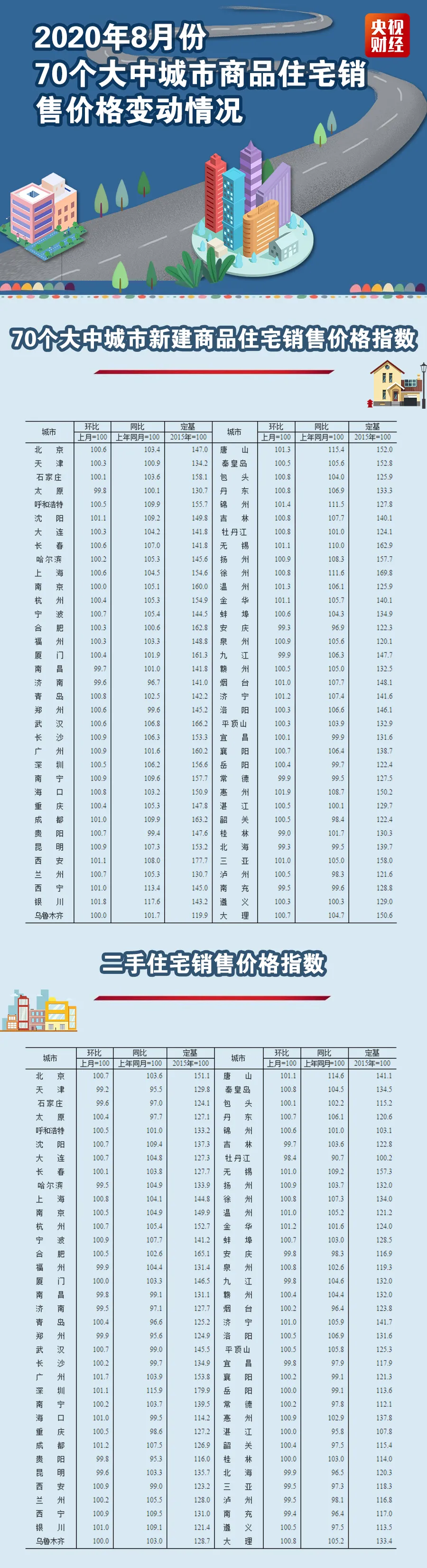 发表时间:2021-01-04 15:24来源:漳州楼市情报 【编者注:为了向网友提供更多更丰富的资讯,本网将转载、转发部分回顾性资讯,相关资讯的发布时间、所述事件时间,请网友留意。注:本文发布于2020年9月。】 2020年8月份70个大中城市 商品住宅销售价格变动情况 (快看看你所在的城市吧!) ↓↓↓