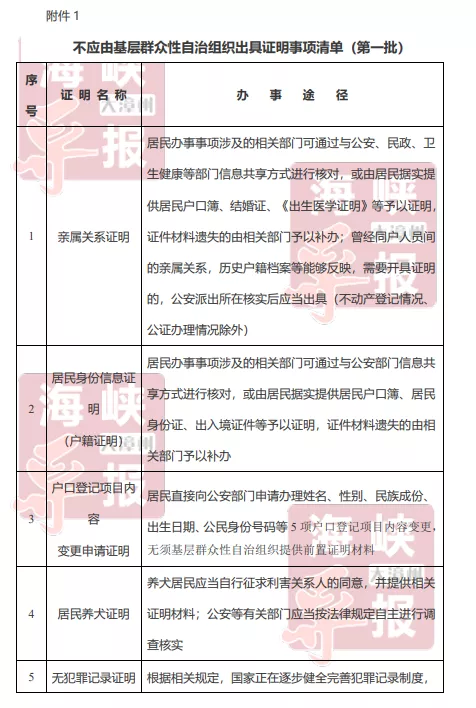 发表时间:2021-01-11 17:39来源:海峡导报大漳州 【编者注:为了向网友提供更多更丰富的资讯,本网将转载、转发部分回顾性资讯,相关资讯的发布时间、所述事件时间,请网友留意。注:本文发布于2020年12月。】 导报记者今日获悉,漳州首批不应由基层群众性自治组织出具证明事项清单出炉! 具体名单如下: