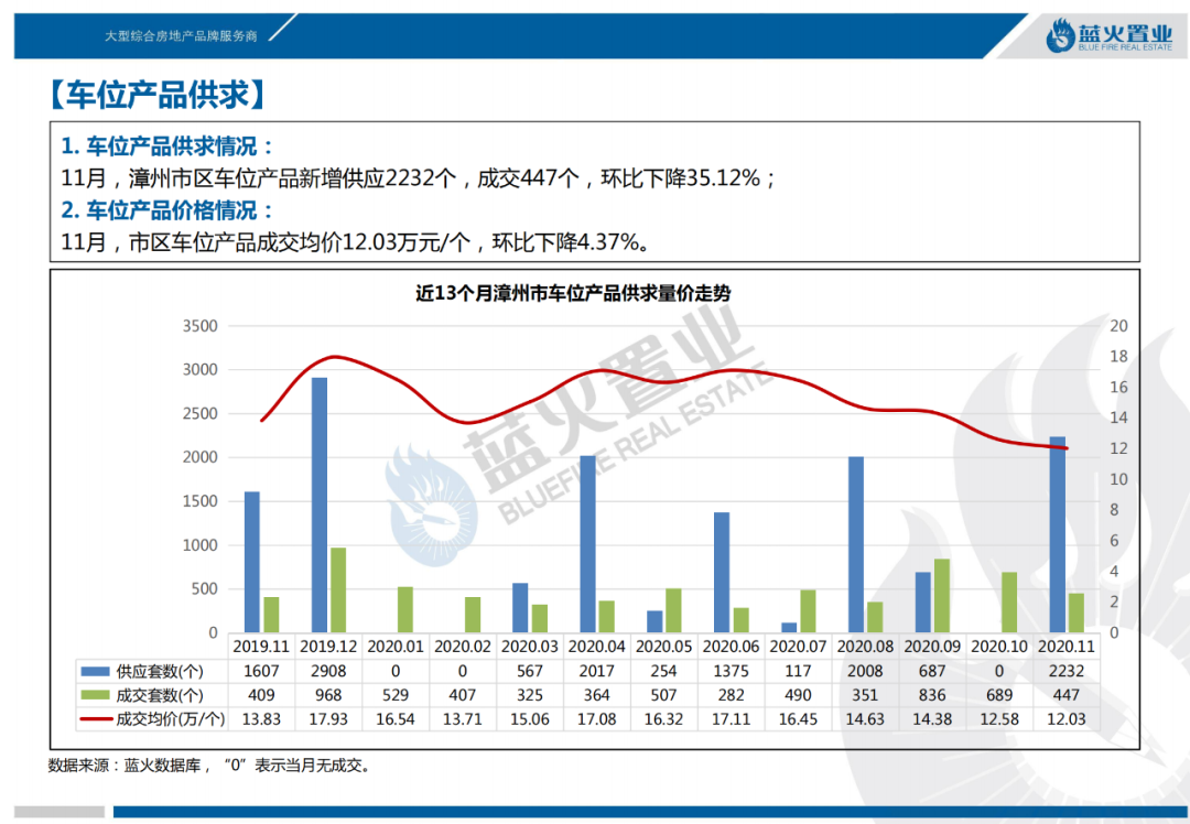 发表时间:2021-01-11 18:09来源:蓝火置业 【编者注:为了向网友提供更多更丰富的资讯,本网将转载、转发部分回顾性资讯,相关资讯的发布时间、所述事件时间,请网友留意。注:本文发布于2020年12月。】 2020年11月漳州住宅成交均价13997元/㎡涨2.03%!后市或将降价! 2020年11月,漳州楼市进入“金九银十”集中备案,全市商品住宅供销价,相比前一个月,稳中有跌,营销方面,进入11月,各项目营销活动主要围绕“双11”促销、及“双12”促销蓄客为主。另一方面,年关将至,不少开发商都把回款作为首要工作,新房市场或将出现众多优惠,尤其是一些去化困难的项目,或将会进行降价促销。