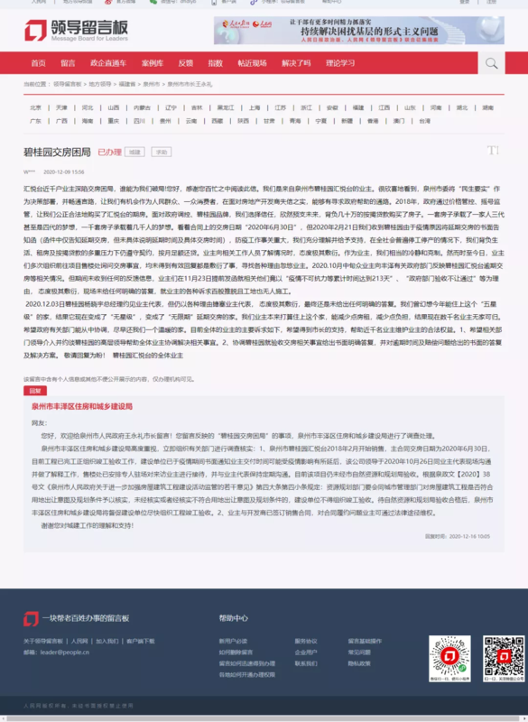 网曝泉州碧桂园汇悦台近千户业主深陷交房困局!官方回复来了! 二维码