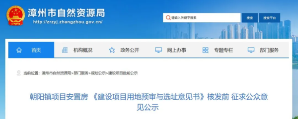 发表时间:2021-01-15 15:32来源:龙文区融媒体中心 近日 漳州市自然资源局发布了 朝阳街道项目安置房 《建设项目用地预审与选址意见书》核发前 征求公众意见公示