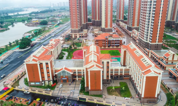 ▲位于鸿浦豪园小区中的鸿浦小学 无独有偶,在龙文区另一“高颜值”坐标——上美湖旁,漳州市实验小学龙文校区也正如火如荼推进中。地处上美湖片区中部区域,规划总占地面积约50亩,总建筑面积约3.8万平方米,教学综合楼、科学楼、体育馆,塑胶跑道等“常规动作”一应俱全,地下停车场、闽南式建筑和连廊设计等“自选动作”颇具亮点,该项目有望于今年年底完工,届时可开办48个教学班,容纳2160个学生。
