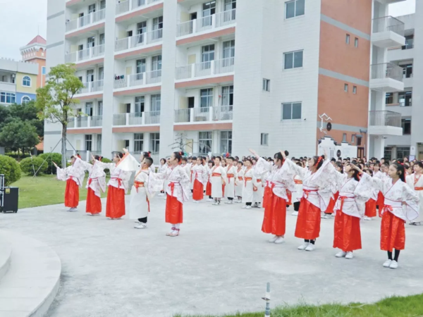 如果说校园条件是“硬件”,教师是“软件”,那么好的文化就是让这些软硬件发生最佳效应的催化剂。 以文化人、以德育人,龙文区用文化打好教育的亮丽底色,扣好每一名孩子人生的“第一粒扣子”。 “文”的火种在播散。“天地性,人为贵……”龙文实小淳风广场,师生们身着汉服,行传统礼仪,吟诵本土“三字经”——《启蒙初诵》,声情并茂、抑扬顿挫;“它比《三字经》早了80年,不少句子还相同,”三尺讲台上,德育老师循循善诱、引人入胜,“九龙江北溪流经朝阳镇石井村蓬洲社,那是闽南理学开创者陈淳的故乡……”这一“陈淳的传说”,被列入了龙文区第三批非物质文化遗产项目。