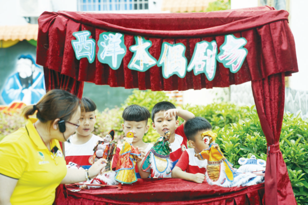 为充分发挥非物质文化遗产对广大未成年人进行传统文化教育和爱国主义教育的重要作用,去年6月份,龙文区文化体育和旅游局与区教育局联合开展了非遗项目何阳拳进校园活动。在借鉴国内传统武术操的基础上,学校最终从何阳拳拳术套路中提取了8个经典动作,结合体操八拍模式创编成武术操,并录制了口令音乐。目前,学校的何阳拳武术操校本教材已经编完,正在审核。伴着九十九湾的悠悠水声,“何阳拳”已在校园生根,非遗的种子在孩子们心中慢慢发芽。 而在几公里之外的九龙江北溪北岸也有一道风景,郭坑中心幼儿园这一所全国足球特色幼儿园内,几名小朋友提腿颠球、动作连贯…… “文武双全”,更多的文化品牌赛事在打造,“奋进新时代、开启新征程”校园艺术节暨三个艺术团比武举行。更多的文化特色在形成,漳州市二实小的歌仔戏,龙师附小龙文分校的管乐团,龙文中学的合唱团,初具雏形。