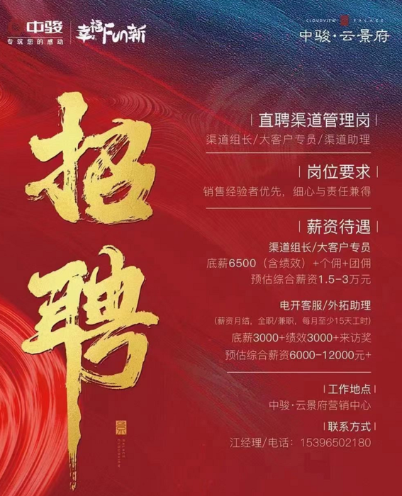 长泰中骏云景府招聘渠道组长/大客户专员/渠道助理 二维码