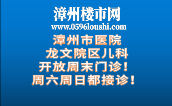 从本周末起,为了满足广大患儿的就诊需求,给患儿提供更加方便快捷的服务,漳州市医院儿科将在原有周六上午门诊的基础上开放周末门诊,全面覆盖周末两天的上下午,让患儿在“休息日”也可以到医院找医生就诊,以有效缓解日常门诊看病拥挤问题,同时也满足患儿及家长不同时段的就医需求,为大家提供更多的便利! 门诊时间及预约方式 门诊时间: 周六、周日 上午8:00-12:00 下午1:30-4:30 预约方式: 关注“福建省漳州市医院”微信公众号 ↓ 便民服务 ↓ 预约挂号