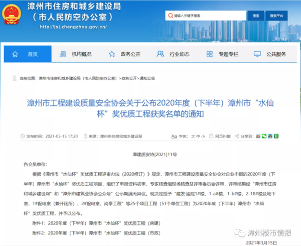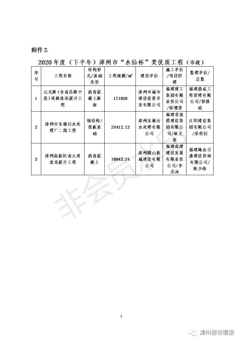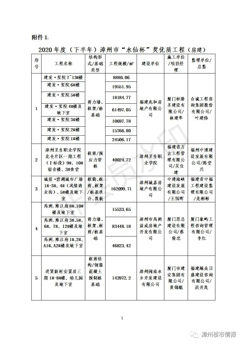 附件1:2020年度(下半年)漳州市“水仙杯”奖优质工程(房建)