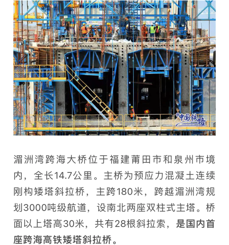 发表时间:2021-03-22 20:05来源:人民网 近日,国内首条时速350公里跨海高铁——福州至厦门高速铁路建设工地传来好消息,全线控制性工程湄洲湾跨海大桥主塔成功封顶……