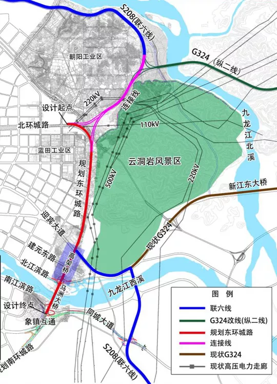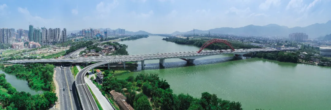 ===东环城路=== 该项目全长8.237km,起点位于联六线龙文段,往南跨漳龙高速,沿云洞岩西麓走行,跨越九龙江后至项目终点象镇互通。除部队用地约300米外,主线路基已贯通,现正在进行路面工程及附属设施施工。全线控制性工程马洲大桥于2020年12月5日合龙,桥面板于2021年2月7日架设完成,实现全桥贯通,现进行马洲大桥桥面板湿接缝施工。