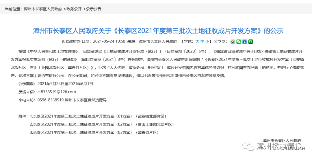 重磅!长泰区发布第三批次土地成片区开发!三大片区征收超191公顷!教育用地18公顷 二维码