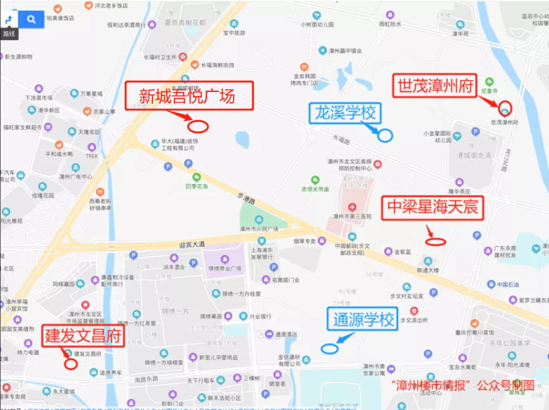 漳州楼市情报注:九年一贯制公办学校“龙溪学校”、“通源学校”大致位置图
