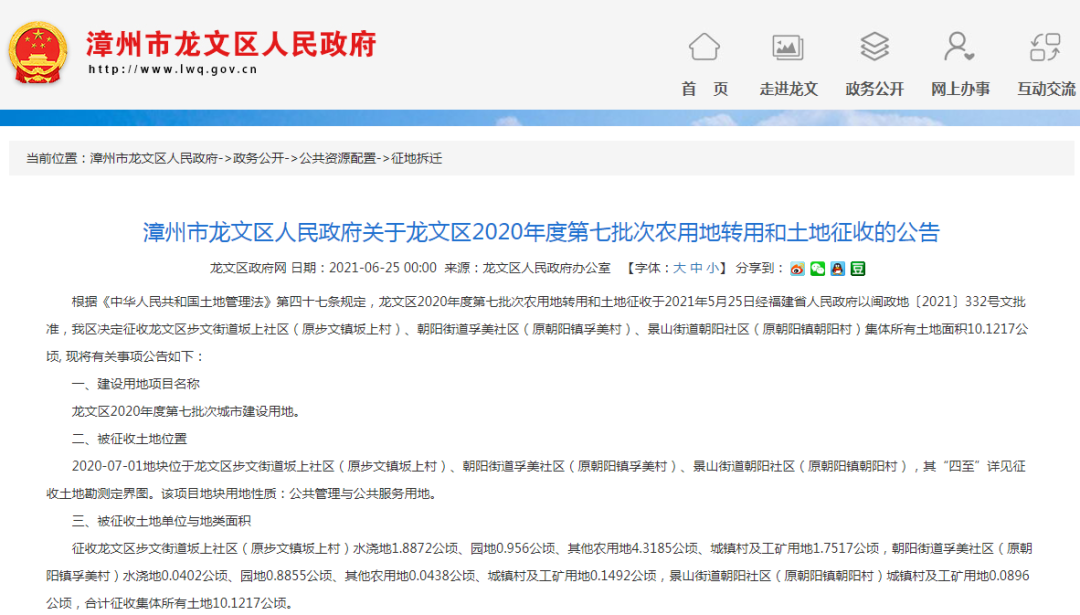漳州市龙文区人民政府关于龙文区2020年度第七批次农用地转用和土地征收的公告 漳州市龙文区人民政府 2021年6月22日 福建省人民政府关于国省干线联十一线漳州长泰段公路工程二期A段建设农用地转用和土地征收的批复 闽政文〔2021〕222号 福建省人民政府 2021年6月19日 来源:漳州楼市情报综合龙文区政府网、中国福建 免责声明:凡注明“来源:漳州楼市网”或“漳州楼市情报”的所有文字图片视频等资料,版权均归漳州楼市网/漳州楼市情报所有,转载请注明出处;文章内容仅供参考,不构成投资建议,也不代表漳州楼市网/漳州楼市情报赞同其观点。文中所涉面积如无特别说明,均为建筑面积。文章如有涉及侵权的内容、图片以及其它问题的,请联系本站删除,联系电话:0596-2182801。 |