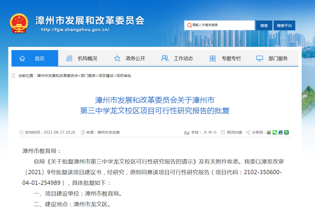 重磅!漳州三中龙文校区可研获批!总投资近12亿!建设期限21个月! 二维码