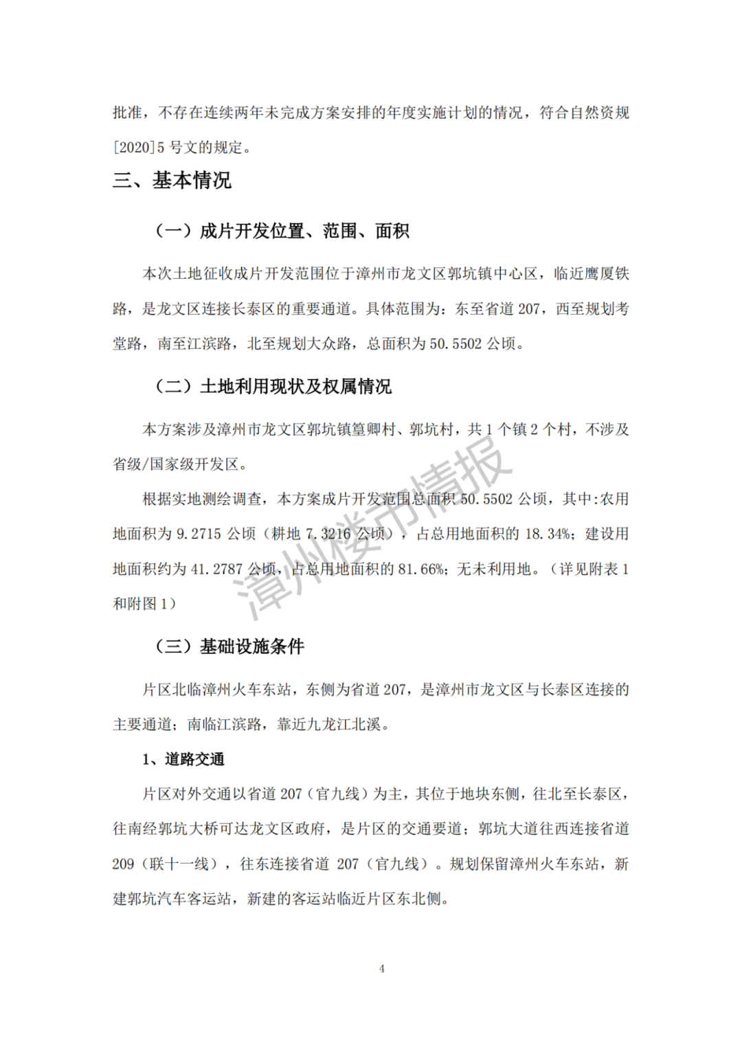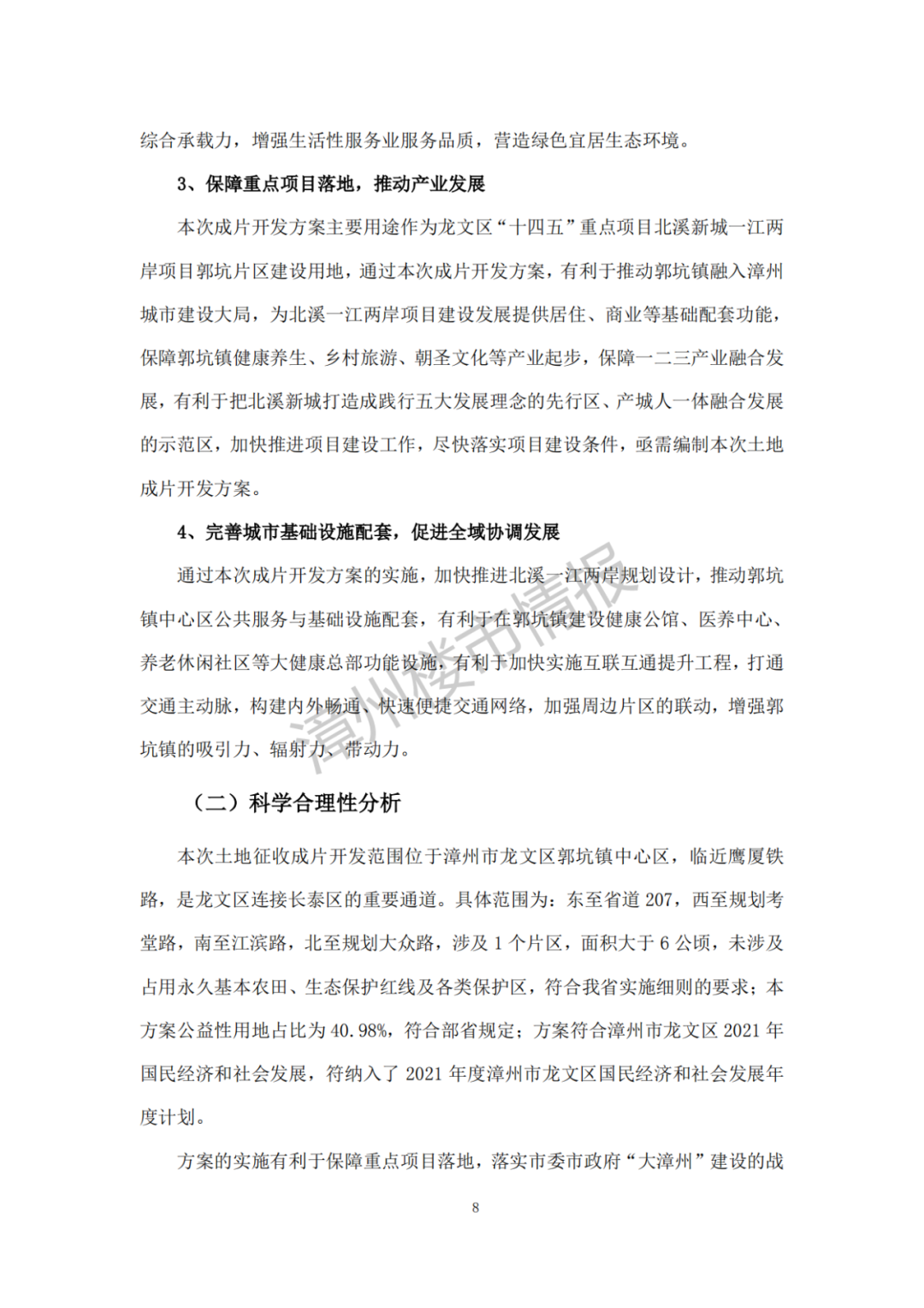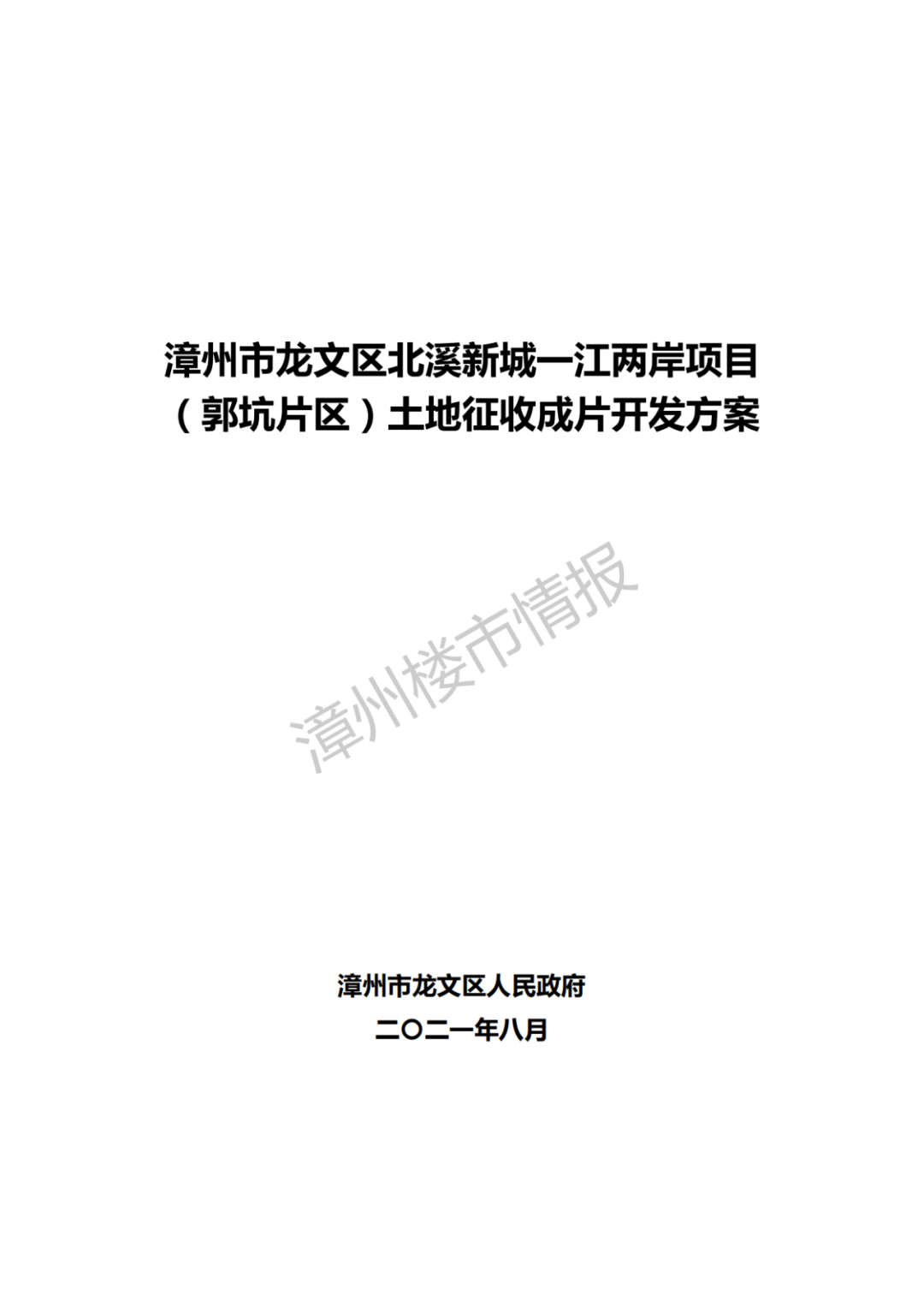近日,龙文区政府网发布《漳州市龙文区人民政府关于《漳州市龙文区2021年度第四批次土地征收成片开发方案》的公示》,即漳州市龙文区北溪新城一江两岸项目(郭坑片区)土地征收成片开发方案公示。 漳州市龙文区北溪新城一江两岸项目(郭坑片区)土地征收成片开发方案主要内容如下: