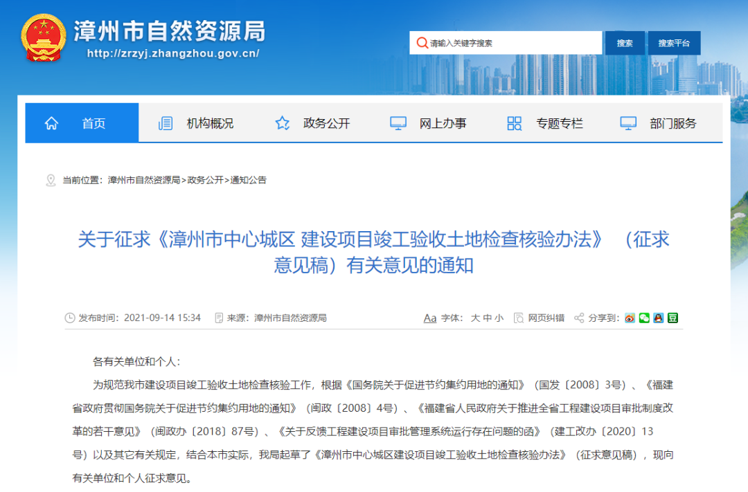 漳州市中心城区建设项目竣工验收土地检查核验办法征求意见稿出炉 二维码