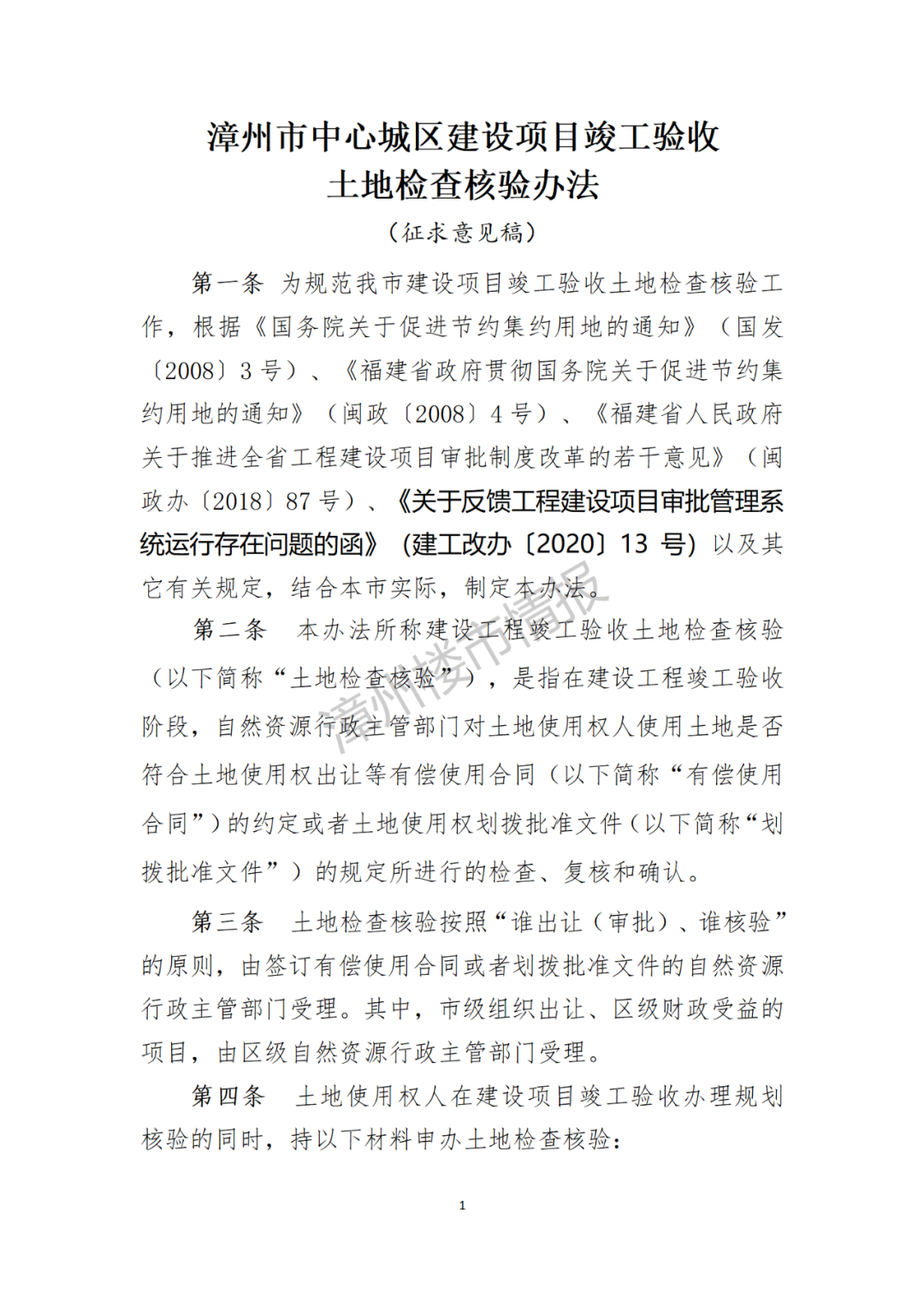 附件:漳州市中心城区建设项目竣工验收土地检查核验办法(征求意见稿)