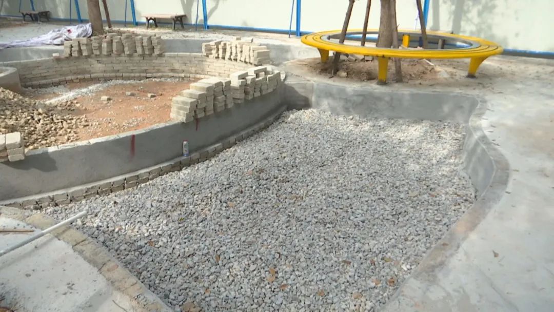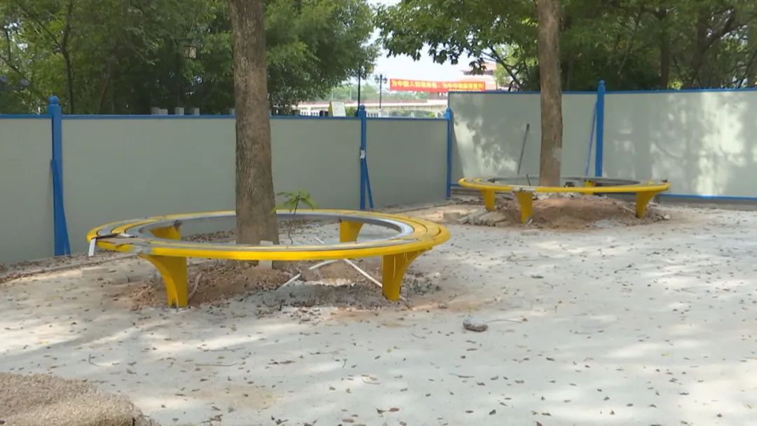 在市区江滨公园旧中山桥附近,这个占地500多平方米的儿童沙坑已基本成型,工人们正进行座椅等设施的焊接工作。