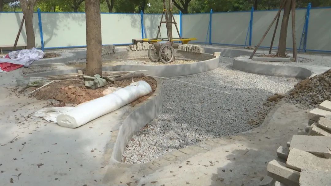 记者在东侧围墙看到,原本的透水砖部分换成鹅卵石,长度约40米,可供市民赤脚行走。在健身区旁,新增设的20多平方米的沙坑也已完工。