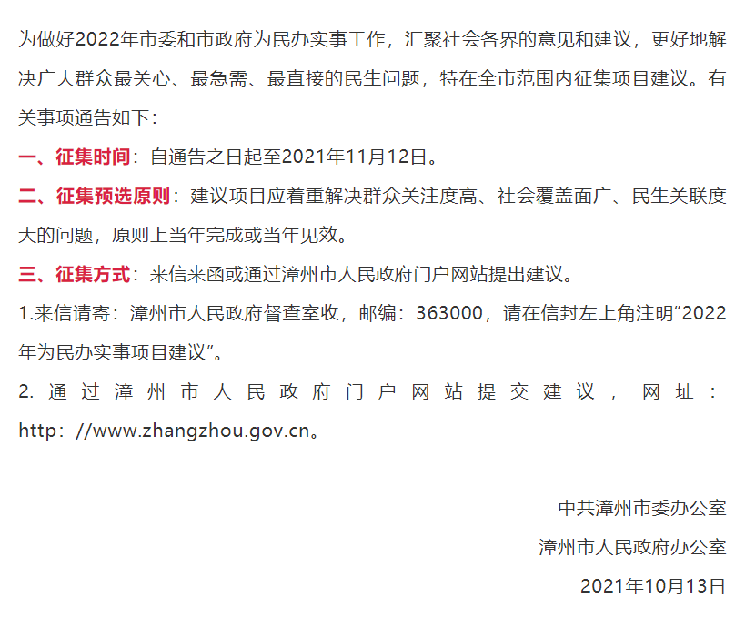 2022年漳州为民办实事项目征集启动!2021年征集来的办实事项目… 二维码