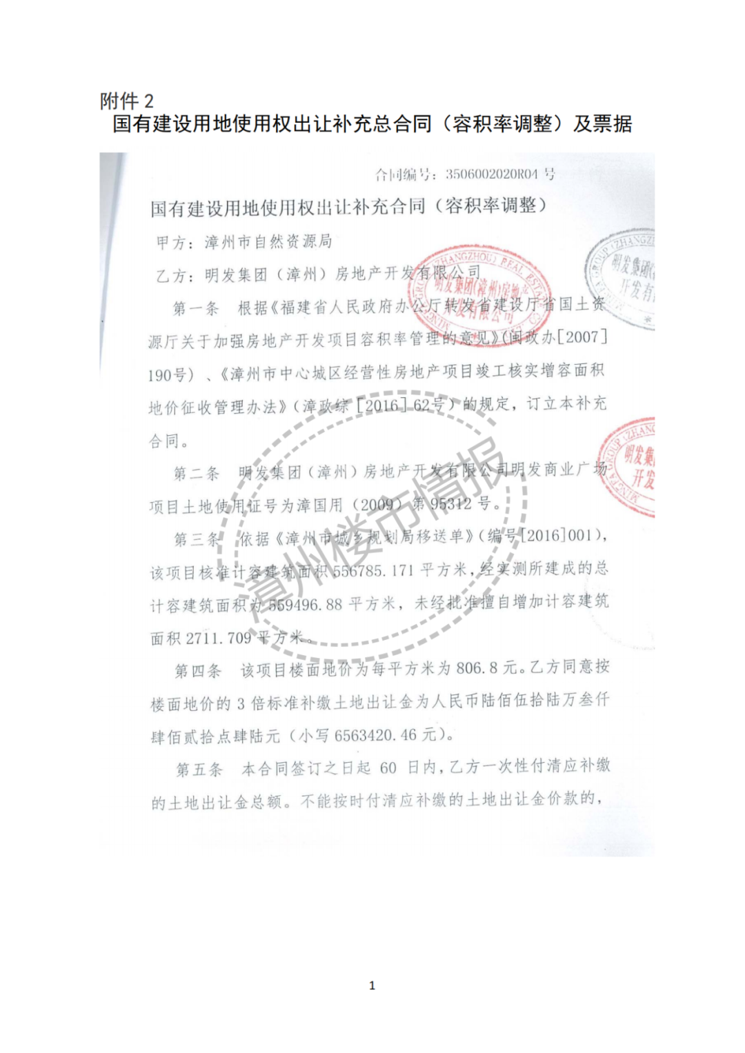 2.国有建设用地使用权出让补充总合同(容积率调整)及票据