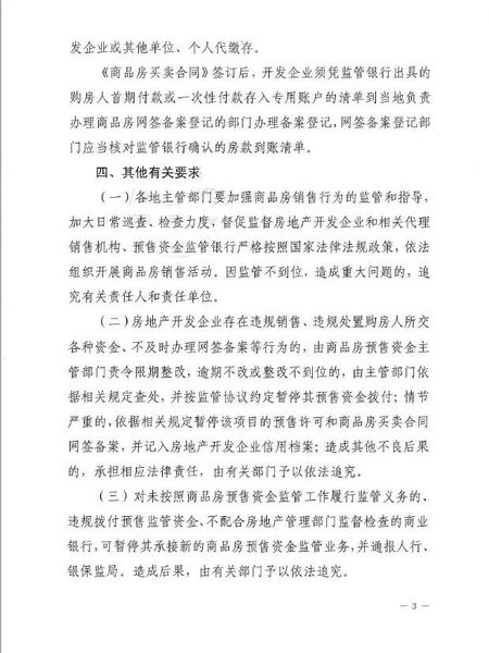发表时间:2021-11-02 21:52来源:漳州市住建局 根据商品房预售的相关管理规定,新建商品房预售资金应全部存入监管账户,遵循“政府监管、多方参与、专户专存、专款专用”的原则,房地产开发企业不得要求购房人将房价款存入除监管账户之外的其他账户。 ![]() ![]() ![]() ![]()