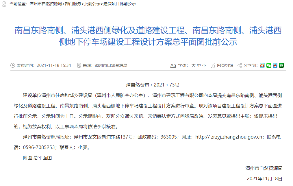 漳州市区南昌东路南侧、浦头港西侧将建地上公园、地下停车场 二维码