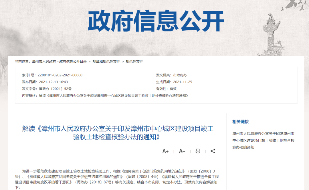 新政!漳州市发布中心城区建设项目竣工验收土地检查核验办法通知 二维码