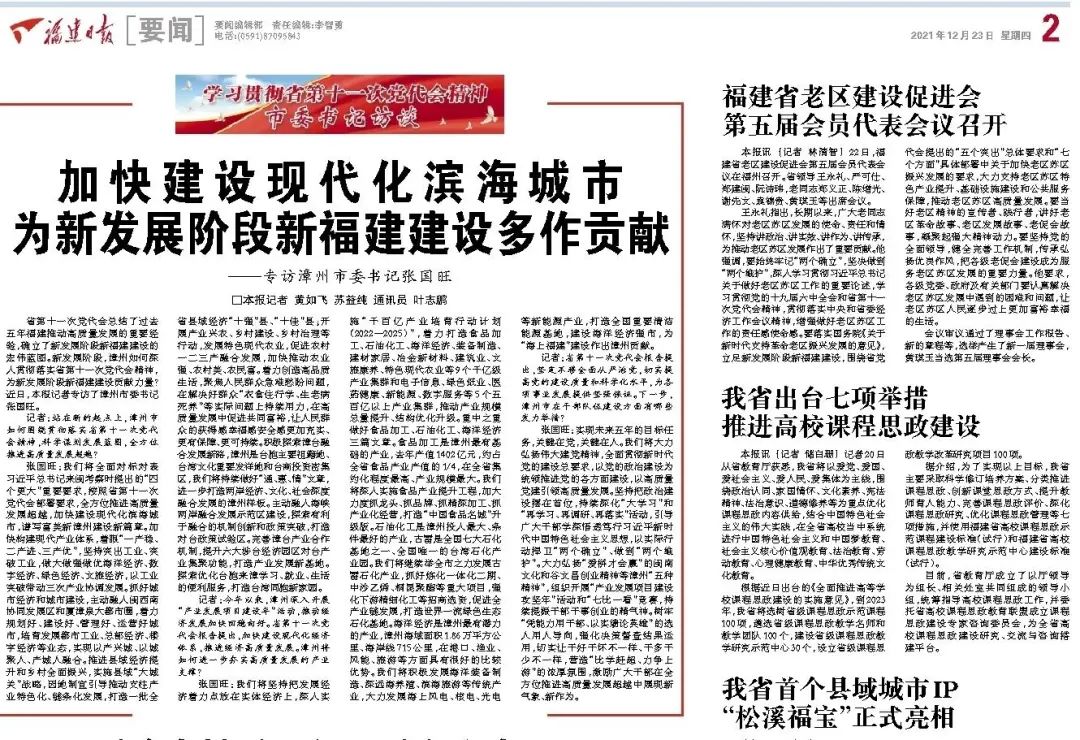福建日报专访漳州市委书记张国旺:加快建设现代化滨海城市 二维码